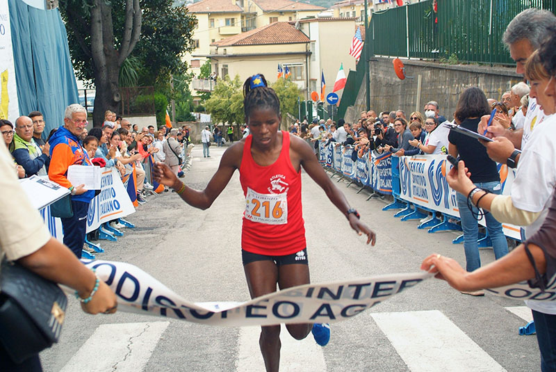 Pronostico rispettato anche nella Gara Femminile – Trofeo Agnese Lodato, nella quale si è imposta la keniana Nancy Kerubo Kerage (classe 1993), in fuga già dopo poche decine di metri. 28’16” il crono finale per la portacolori dell’Atletica Sandro Calvesi, che ha preceduto di quasi 3 minuti Paola Patta (classe 1974, tempo 31’06”) dell’ASD Podistica Solidarietà. A completare il podio “rosa” Annalisa Cretella (classe 1986) dell’ASD Podisti Cava Picentini Costa d’Amalfi, al traguardo col tempo di 33’19”.