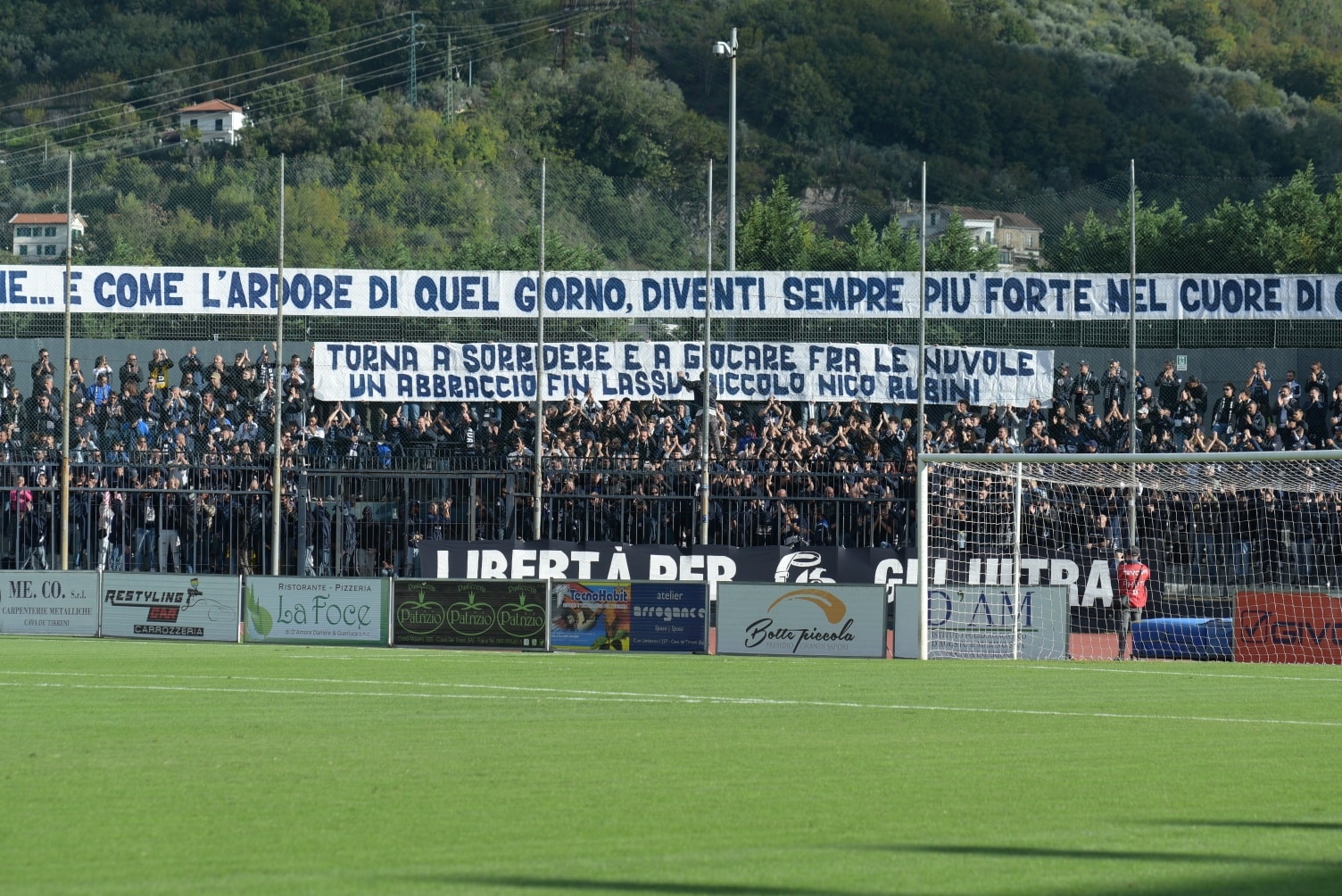 Prima del fischio d’inizio, nel ricordo del piccolo Nico Rubini, nipote del direttore sportivo neroverde Leonardo Rubini, tragicamente scomparso in settimana all’età di sei anni, la società Cavese omaggia il Bitonto con un bouquet di fiori e con una piccola maglia con le firme di tutti i giocatori della formazione biancoblù. Inoltre, gli ultras aquilotti espongono uno striscione con dedica a tal proposito, mentre non è mancato neanche il toccante omaggio dei tifosi bitontini giunti a Cava.