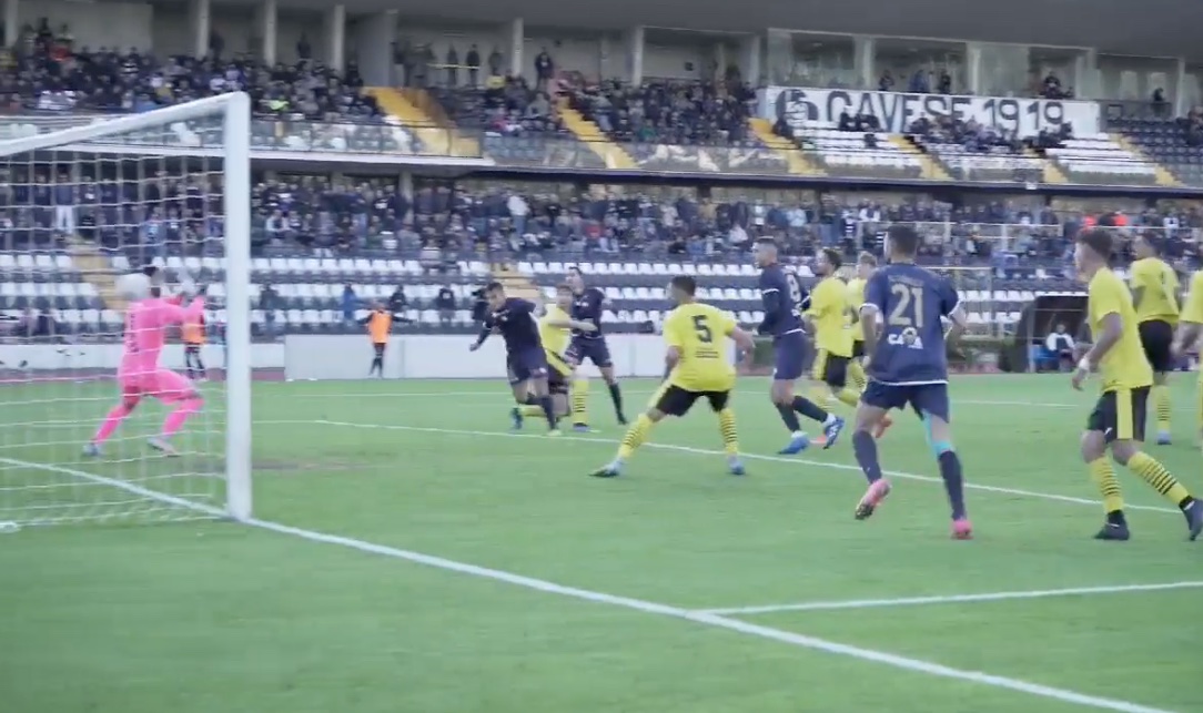 La squadra ospite giocherà, ovviamente, col lutto al braccio. La gara inizia con la Cavese in avanti che vuole dimostrare la sua impronta da capolista con il possente Aliperta, che fa valer la sua fisicità a centrocampo, con Banegas che sulla destra è imprendibile e con l’asse sinistro Maffei-Gagliardi che ben figura, anche se le giocate biancoblù nasceranno quasi sempre dall’altro lato.