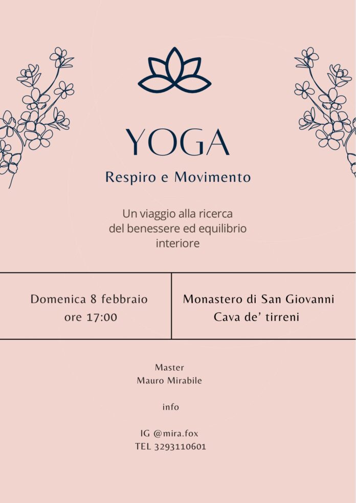 Domenica 8 febbraio alle ore 17:00, presso il Monastero di San Giovanni a Cava de’ Tirreni, si terrà un incontro dedicato alla pratica dello yoga come integrazione di respiro, movimento e consapevolezza.